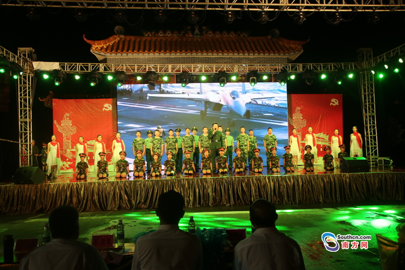 圖為2018年7月28日,廣東省韶關(guān)市仁化縣在城口鎮(zhèn)紅軍紀(jì)念廣場舉行慶祝建軍91周年暨“傳承紅色基因,共敘魚水情深”慶八一軍民聯(lián)歡晚會,迎接八一建軍節(jié)的到來,共話強軍夢,共敘軍民情。整場晚會美輪美奐、氣勢如虹,充分展示了91年來人民軍隊在中國共產(chǎn)黨的領(lǐng)導(dǎo)下,由小到大,由弱變強,從南昌城頭一聲槍響到中國革命走向勝利的過程。圖片來源:南方網(wǎng)