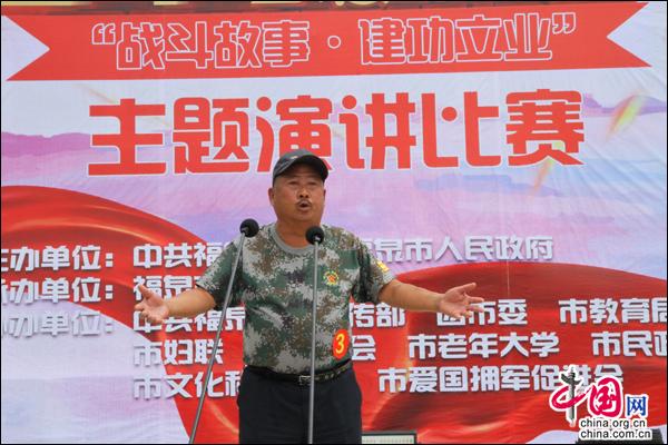 圖為2018年7月26日,貴州省黔南州福泉市舉行“戰(zhàn)斗故事?建功立業(yè)”紀(jì)念建軍91周年主題演講比賽,來自福泉市的退役軍人、現(xiàn)役軍人共32名參賽選手參加比賽。比賽中,參賽選手們結(jié)合自身經(jīng)歷,為大家講述了一段段軍旅故事,他們用激情澎湃的演講、生動感人的故事,打動了在場的每一位觀眾。圖片來源:人民網(wǎng)