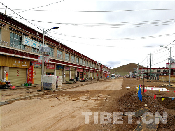 但由于超高海拔、極度高寒缺氧,基層干部待遇偏低,基礎(chǔ)設(shè)施、醫(yī)療衛(wèi)生和教育資源嚴(yán)重缺乏,社會(huì)公共服務(wù)一直處于較低水平。圖為雙湖縣街景,道路寬闊,兩旁是整齊的民居,部分路段還在施工。