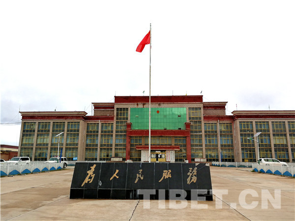 雙湖縣正式成立于2013年,總面積有11.67萬平方公里,占地比浙江省還大,是全國(guó)第三個(gè)面積大縣,而人口只有1萬多。圖為雙湖縣縣委縣政府門前紅旗飄揚(yáng)。