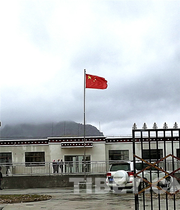 圖為申扎縣申扎鎮(zhèn)六村廣場(chǎng)上飛揚(yáng)的國(guó)旗。