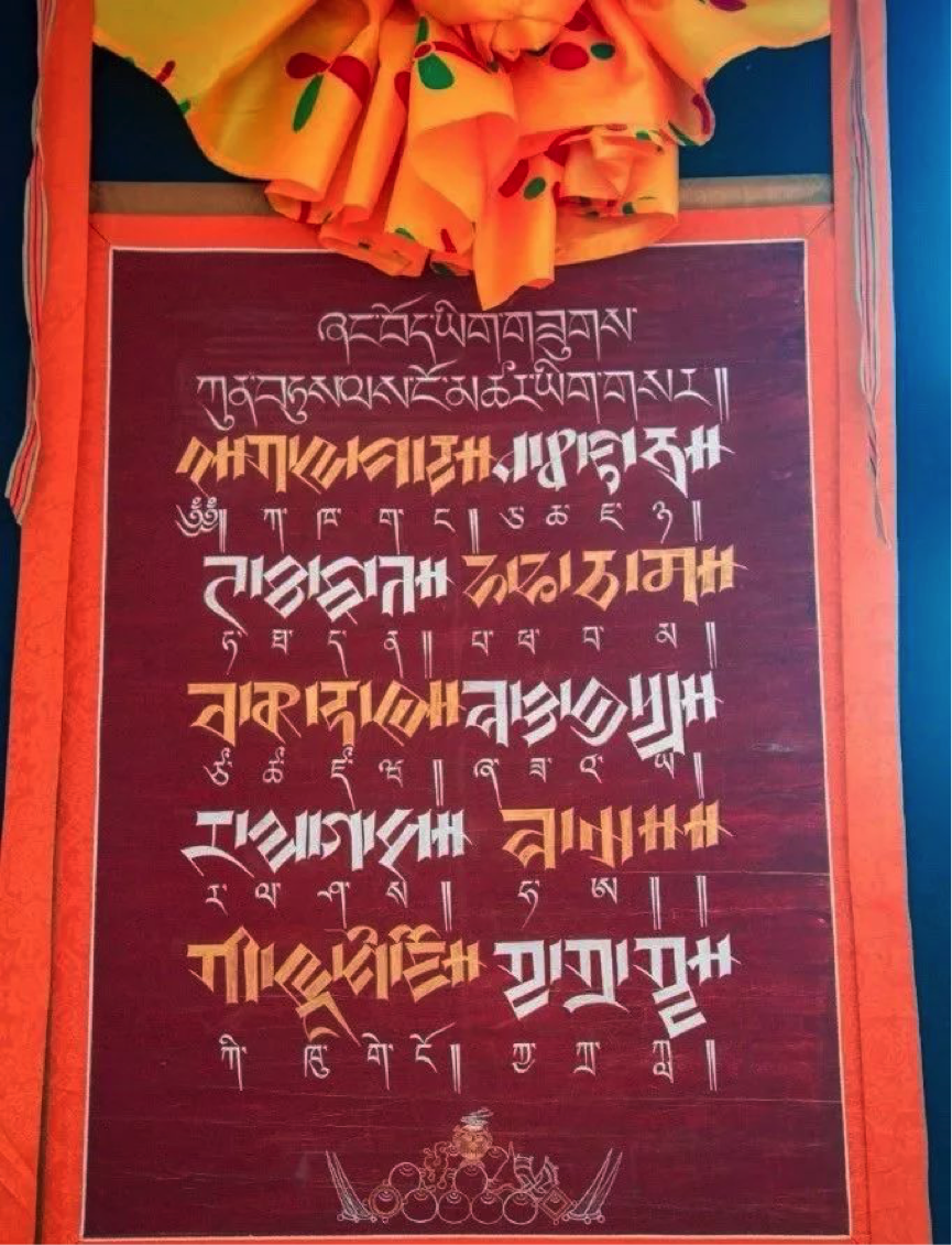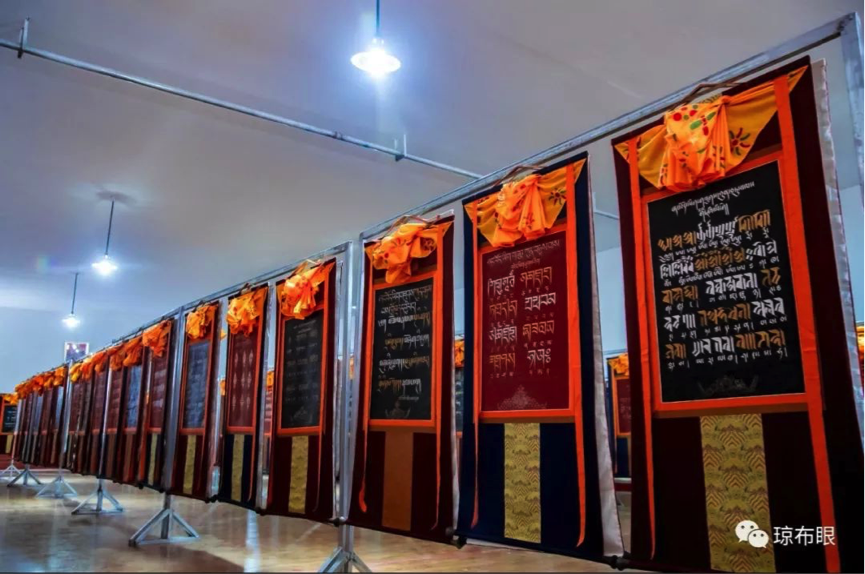 據(jù)悉,《藏文字體最多的唐卡大集》項(xiàng)目歷時(shí)兩年的時(shí)間完成,通過收集、整理,采用象雄時(shí)期的列磚體、稞體、烏金體等藏文字體書寫而成,內(nèi)容包括《習(xí)近平談治國理政》《四講四愛》《薩迦格言》《水木格言》《瓊布民間諺語》等,其中藏文書法類唐卡218種,人物造像類唐卡5幅,前言、結(jié)語唐卡2幅,共計(jì)225幅唐卡。