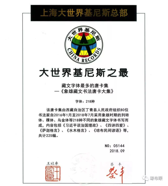 中國西藏網(wǎng)訊 2018年9月20日,大世界基尼斯在西藏丁青縣舉辦了《藏文字體最多的唐卡集》大世界基尼斯頒證儀式。