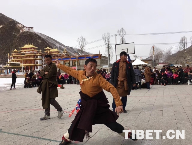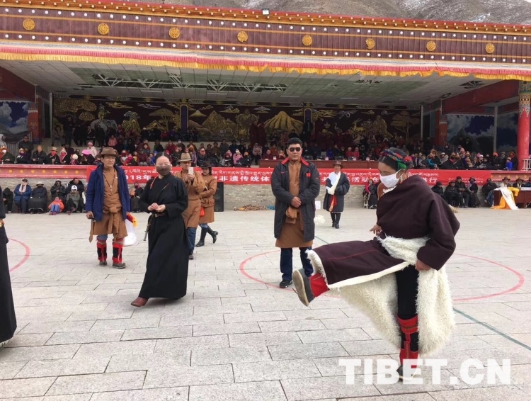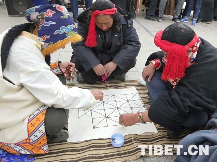 羅松戰(zhàn)斗說,現(xiàn)在鄉(xiāng)黨委政府對舞蹈隊的支持力度一年比一年大,我們到祖國的天南地北跳舞底氣足,心里熱、勁頭大。在廣場陽面有幾個男人在做投擲牛拐骨的競技游戲,幾名婦女玩羊拐骨,還有一些人在跳羊毛毽子,記者駐足觀望片刻。嚯,有的能連續(xù)跳100多下,多半?yún)⑴c者還會后腳轉(zhuǎn)身跳……笑聲、歡呼聲一陣陣傳入耳中。男子投擲牛拐骨的游戲,比較刺激,記者也是第一次見。其規(guī)則是參與者先在十米開外的地方用力將一枚牛拐骨投向石壁,待牛拐骨反彈過來,參與者就得接住,越多越好。副鄉(xiāng)長鄭叢辛告訴記者說:“每年的初一、初四,附近村社的農(nóng)牧民群眾都會來這里進(jìn)行各種民間游戲比賽,如藏棋、拔河、藏牌等,一些幾近失傳的活動又恢復(fù)了生機。還要舉行一些具有現(xiàn)代風(fēng)格的時裝秀、歌詠比賽等?!?/p>