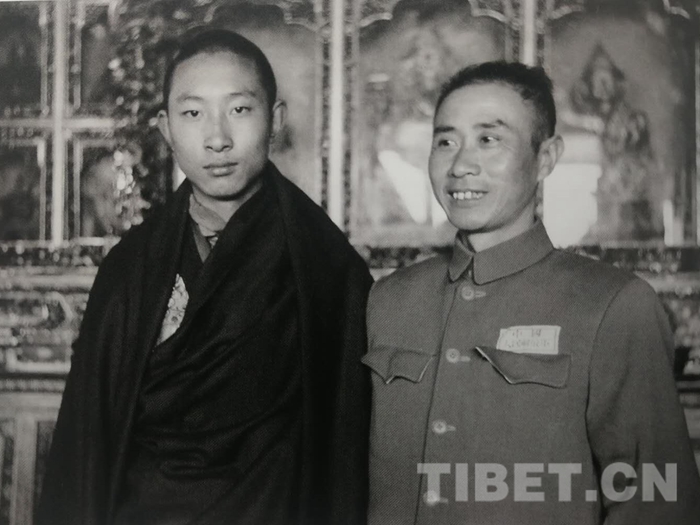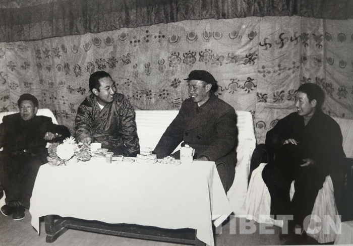1952年4月28日,十世班禪額爾德尼?確吉堅(jiān)贊及其堪布會議廳委員會全體人員從青海返回西藏,到達(dá)拉薩。張經(jīng)武和人民解放軍駐拉薩機(jī)關(guān)、部隊(duì)、西藏地方政府各級官員、西藏地方部隊(duì),三大寺喇嘛、拉薩市僧俗群眾等兩萬多人迎接。圖為張經(jīng)武和十世班禪的合影。