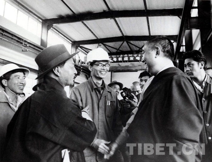 十世班禪大師視察拉薩團結卡墊生產合作社,1982年。劉麗嘉攝