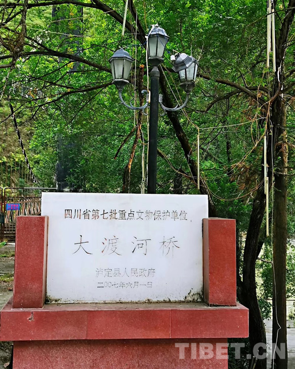 七十年代初,隨著祖國社會主義建設(shè)事業(yè)的發(fā)展,又一座具有民族色彩的雙曲拱橋飛跨在大渡河上,從此,大渡河橋作為戰(zhàn)備橋保護(hù)起來。1999年,該橋被列入甘孜藏族自治州第一批重點(diǎn)文物保護(hù)單位。