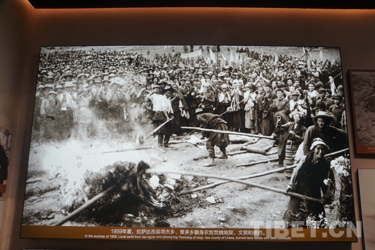 陳宗烈當(dāng)時(shí)正在拉薩達(dá)孜縣汪固爾山腳下采訪,他看到有8個(gè)鄉(xiāng)的農(nóng)民和牧民們?cè)谒巡榍f園領(lǐng)主的庫(kù)房時(shí),發(fā)現(xiàn)了大量文契,大多是人身依附的文書(shū)和高利貸債據(jù)。有的人湊近一翻,竟然發(fā)現(xiàn)自己曾被迫按過(guò)手印的契約也赫然在其中。想到祖祖輩輩都為莊園領(lǐng)主做奴隸,就是因?yàn)檫@些萬(wàn)惡的賣身契和債據(jù),有人振臂高呼:“一把火把它們通通都燒掉!”大家商量著來(lái)到當(dāng)時(shí)的軍管會(huì),詢問(wèn)軍管會(huì)的負(fù)責(zé)人:“現(xiàn)在那些農(nóng)奴主逃跑了,但是這些債券還在,萬(wàn)一將來(lái)那些農(nóng)奴主回來(lái),繼續(xù)奴役我們?cè)趺崔k?我們能不能把這些文契燒了?”軍管會(huì)的負(fù)責(zé)人堅(jiān)定地答應(yīng)了:“當(dāng)然可以,你們現(xiàn)在是可以自己當(dāng)家做主的人。”