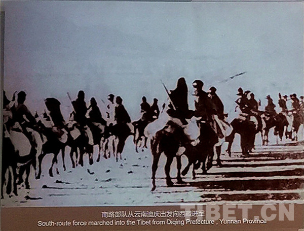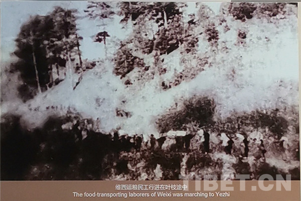 中國西藏網(wǎng)訊 1950年至1951年,云南省迪慶藏族自治州中甸(2001年易名香格里拉縣,2014年撤縣設(shè)市)、德欽縣、維西傈僳族自治縣三縣成為中國人民解放軍南路進(jìn)軍西藏的必經(jīng)要道,被確定為進(jìn)軍基地。期間,三縣投入大量的人力、畜力、物力,運(yùn)送糧秣及軍需至藏邊各駐軍點(diǎn),修筑麗江巨甸至德欽大石頭馬車路,建蓋德欽、西藏察隅軍營、倉庫等,圓滿完成了支援和平解放西藏的光榮任務(wù)。(中國西藏網(wǎng) 記者/王茜 圖片翻拍自迪慶紅軍長征博物館)