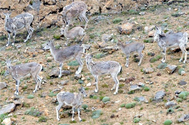 這是生活在羌塘國(guó)家自然保區(qū)的國(guó)家二級(jí)保護(hù)動(dòng)物巖羊。(唐召明2009年8月9日攝)