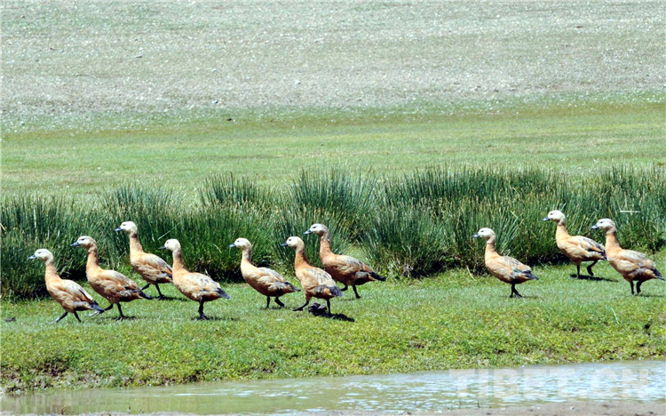 這是國(guó)家二級(jí)保護(hù)動(dòng)物赤麻鴨(黃鴨)在申扎草原河邊“漫步”。(唐召明2009年8月9日攝)
