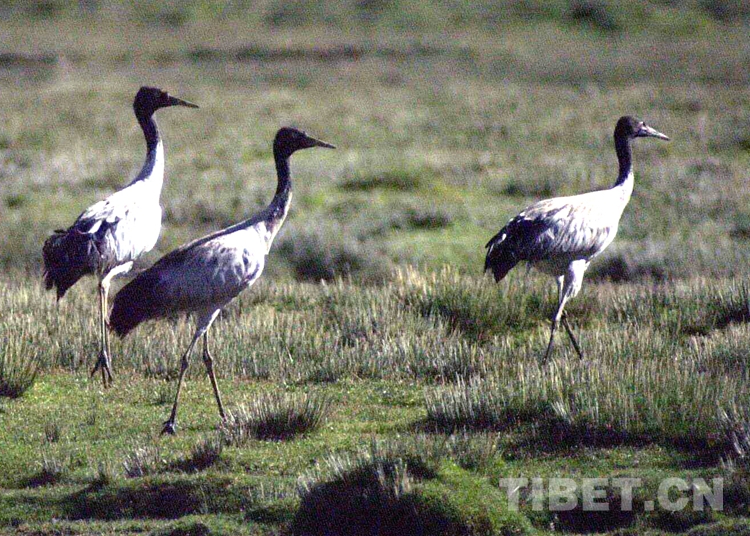 圖為生活在色林錯(cuò)國(guó)家級(jí)自然保護(hù)區(qū)的國(guó)家一類保護(hù)動(dòng)物、被稱為“鳥(niǎo)類熊貓”的黑頸鶴(唐召明2001年攝)
