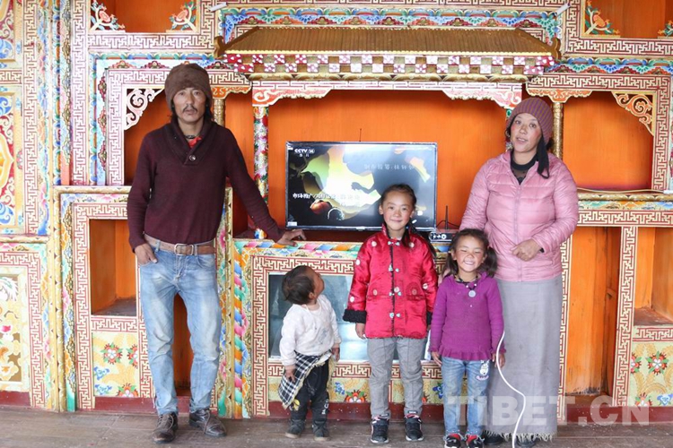 圖為裝上新電視后彭措降央一家高興地在新房合影