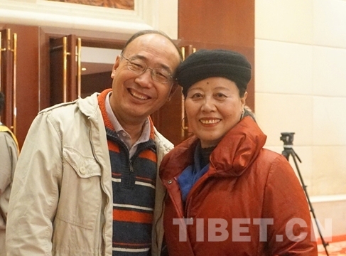 圖為唐召明(左)在《中國西藏》雜志創(chuàng)刊30周年、中國西藏網(wǎng)創(chuàng)辦20周年座談會上和雜志社編輯合影 攝影:王茜