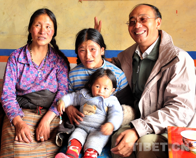 圖為唐召明(右)看望他曾幫助治病的斯求卓瑪(左),并與住上新的安居房,抱上外孫,過上幸福生活的卓瑪一家人合影留念。 圖片由唐召明提供,攝于2015年7月14日