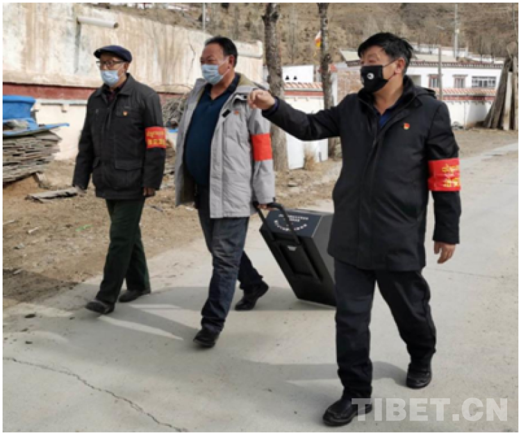 代格村黨支部書記格來達(dá)杰直人快語,他說:“組織上交給我們的任務(wù)就是把本村的群眾保護(hù)好,禁止外來人員進(jìn)入。我們村的全體村民對(duì)防控疫情工作全力支持配合。全村除6人因病重、喪事外,無一人出村。大家都自覺停止了探親訪友、聚會(huì)、轉(zhuǎn)經(jīng)和串門?!备駚聿湃式榻B:“代格村設(shè)有4個(gè)卡點(diǎn),2個(gè)固定卡子和2個(gè)流動(dòng)卡子。固定卡子實(shí)行24小時(shí)值守,任務(wù)是對(duì)外來人員進(jìn)行勸返和本村人員進(jìn)入時(shí)的消毒工作。負(fù)責(zé)流動(dòng)卡子人員在村內(nèi)拉著多功能音響設(shè)備進(jìn)行‘小喇叭’宣傳和消毒工作。