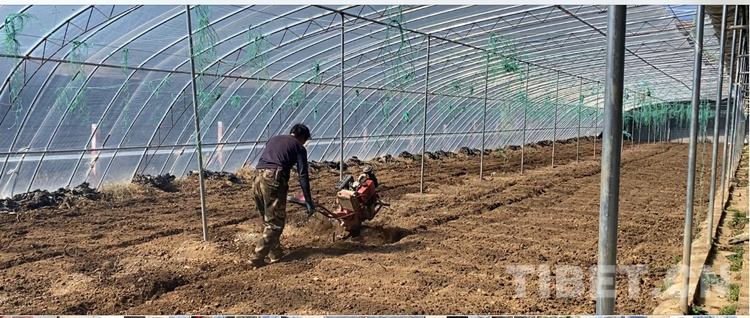 中國(guó)西藏網(wǎng)訊 “噠、噠……”2月27日,在四川省甘孜藏族自治州理塘縣濯?,F(xiàn)代農(nóng)業(yè)園區(qū)的康藏陽光種植基地,濯桑鄉(xiāng)漢戈村村民降央開著手扶拖拉機(jī)在蔬菜大棚里耕地。