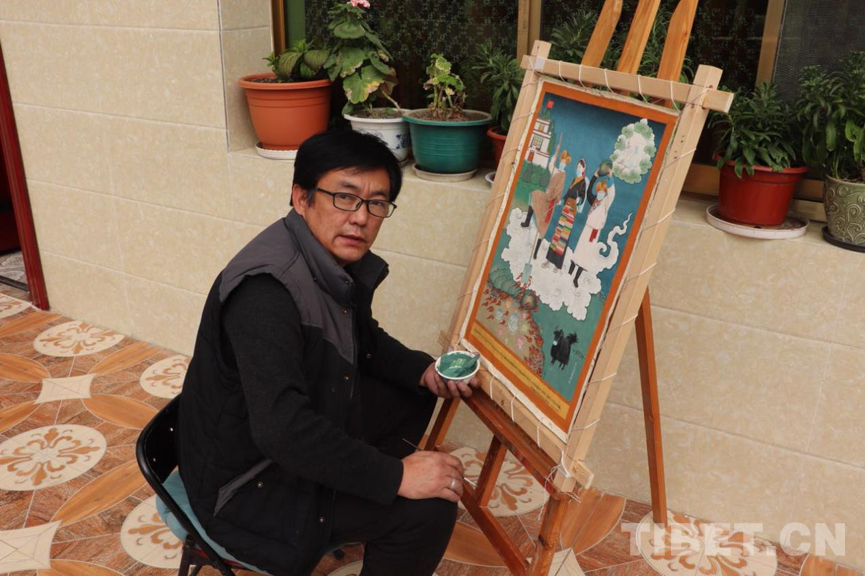 家住在西藏自治區(qū)堆龍德慶區(qū)乃瓊村的旦巴云丹是一名唐卡畫師。他師從國(guó)家級(jí)非遺傳承人、勉唐派唐卡大師丹巴繞旦,如今,已繪制唐卡30余年。新冠肺炎疫情發(fā)生以來(lái),旦巴云丹從手機(jī)、電視等多個(gè)渠道密切關(guān)注疫情情況,這也讓他謀生出繪制戰(zhàn)“疫”主題唐卡的想法。
