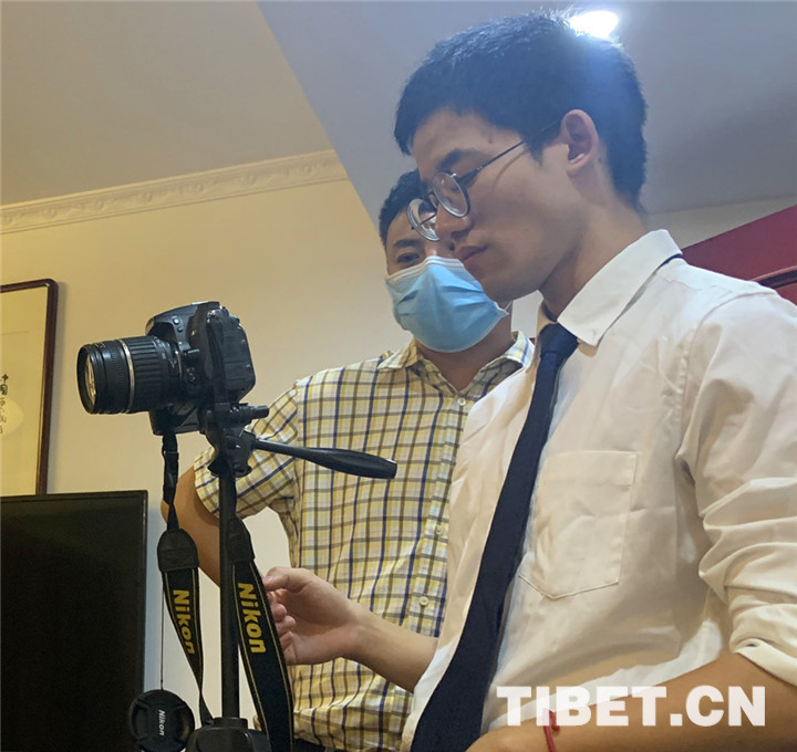 圖為中國西藏網(wǎng)記者正在準(zhǔn)備連線采訪