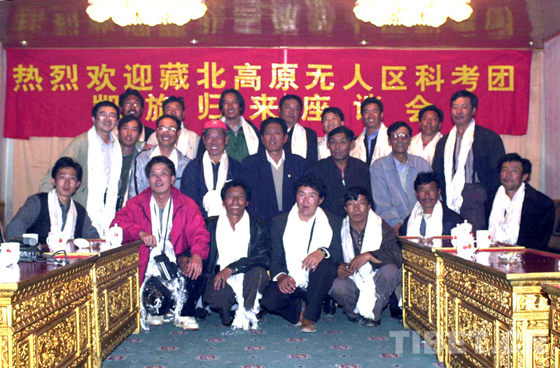 這是藏北高原無人區(qū)科考團人員,在完成2001年科考任務返回拉薩后合影留念(唐召明提供,2001年攝)