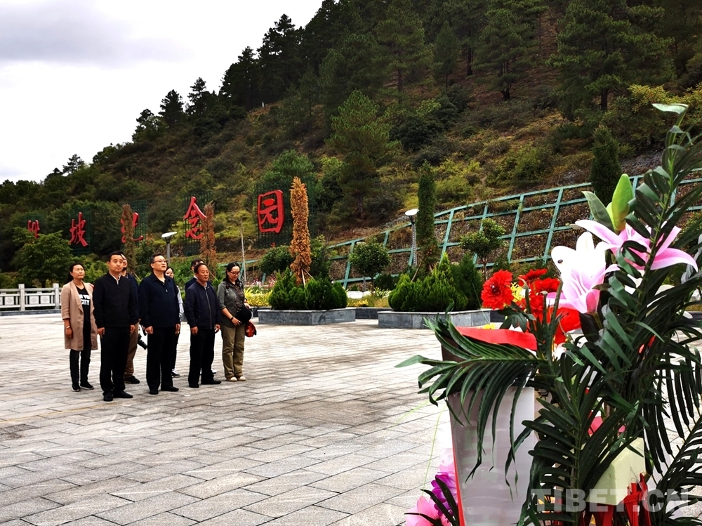 英雄坡上,紀(jì)念碑上鐫刻的“革命烈士永垂不朽”幾個大字,令人肅然起敬,大家垂首肅立默哀。公保代表中國西藏信息中心仔細整理花籃緞帶,并敬獻花籃。隨后,一行人緩步繞行紀(jì)念碑、陵墓,祭奠忠魂。
