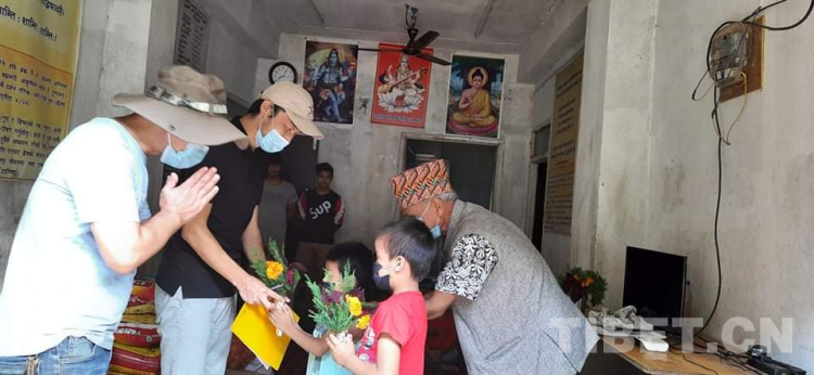 Aama Ko Maya孤兒院小朋友們向中國西藏自治區(qū)農(nóng)牧科學院援尼泊爾北部山區(qū)農(nóng)業(yè)項目組專家獻花以表示感謝