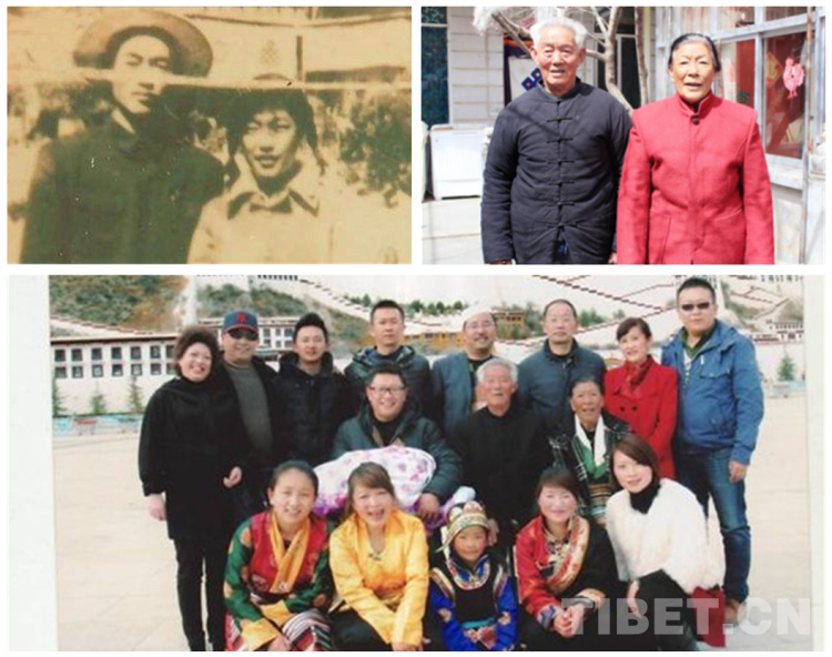 △圖為一個典型的“團結(jié)族”幸福家庭。1959年,薄金清隨部隊來到西藏,轉(zhuǎn)業(yè)后到西藏自治區(qū)氣象局工作,1960年與藏族同事、大學生中巴桑結(jié)婚。而今,全家四世同堂生活在拉薩,20多口人中有藏、漢、回三個民族。左上為薄金清和中巴桑年輕時的合影,右上為薄金清和中巴桑2017年時的合影,下圖為薄金清和中巴桑一家全家福(圖片來源于央視、西藏發(fā)布、拉薩文明網(wǎng))