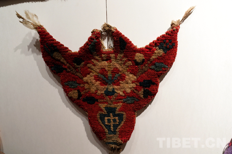 驢遮面是西藏在傳統(tǒng)春耕季節(jié)為牲畜制作的頭飾?!按焊竟?jié),家家戶戶會(huì)將自家的牲畜精心打扮,寓意來年風(fēng)調(diào)雨順。”徐應(yīng)龍說:“為牲畜愿意花很多心思,精心制作款式樣式都不同的藏毯飾品,體現(xiàn)了農(nóng)牧民群眾對(duì)美好生活的向往和淳樸善良的美好品質(zhì)。”