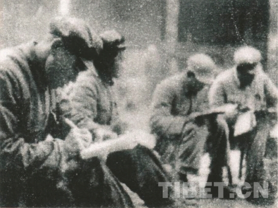 圖為1953年,苗丕一書記帶領波密分工委同志學習藏語