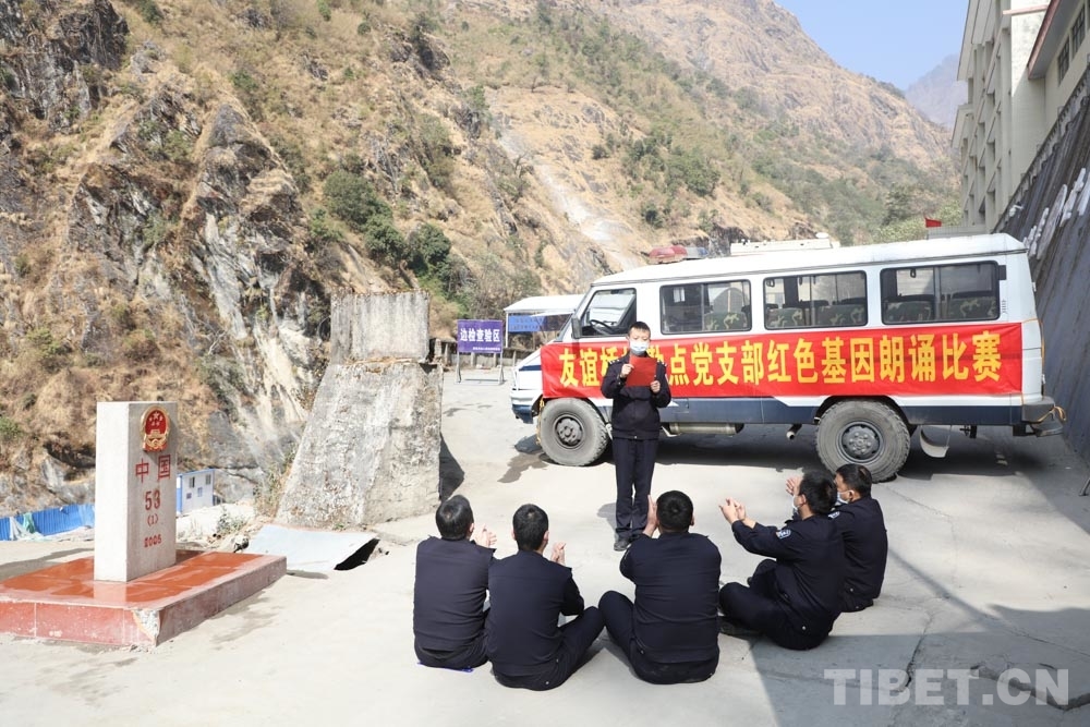 中國西藏網訊 為提升完善四強黨支部建設,豐富一線執(zhí)勤民警文化生活,1月27日,西藏自治區(qū)聶拉木出入境邊防檢查站友誼橋執(zhí)勤點在53號界碑旁舉行紅色基因朗誦比賽,為中國共產黨百年華誕獻禮。