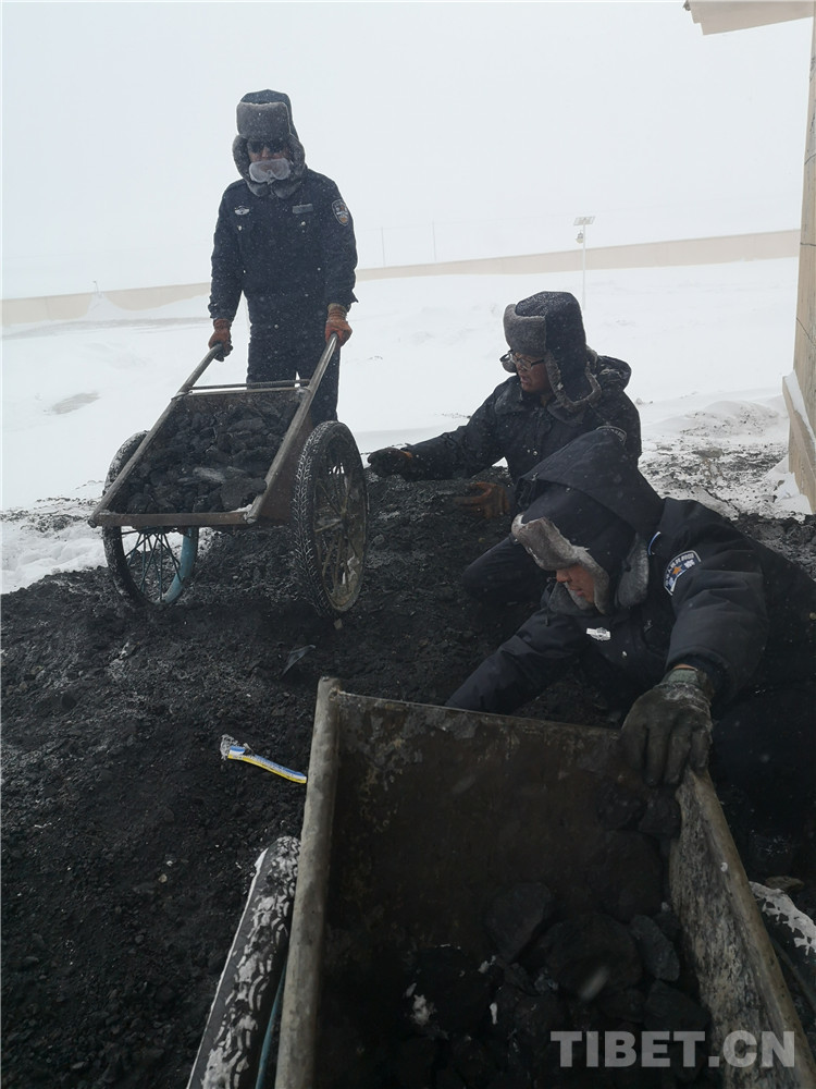 圖為邊境民警們在2019年春節(jié)前遭遇暴雪時運煤