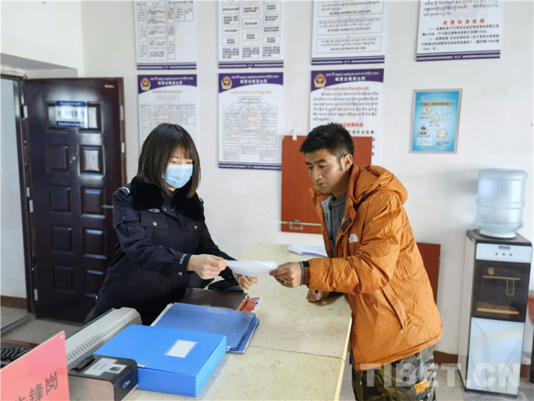 帕里邊境派出所辦證大廳“嚴(yán)格執(zhí)法,熱情服務(wù)”四個大字在警徽的映襯下,顯得格外的莊重。作為總站辦理戶籍業(yè)務(wù)的第一試點(diǎn)單位,帕里邊境派出所也發(fā)揮了很好的帶頭作用,普布桑珠副所長帶我們了解了當(dāng)?shù)氐木游瘯?,各類轄區(qū)戶籍證明材料以及通行證、戶口證件辦理的流程等,也讓我們對基層民警的工作有了初步的了解。