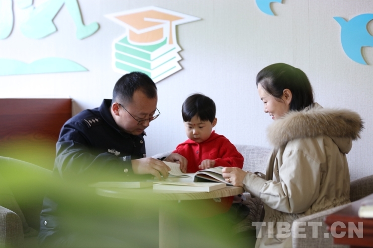 圖為西藏出入境邊防檢查總站聶拉木出入境邊防檢查站民警薛鵬飛和家人在一起 攝影:鄒興國
