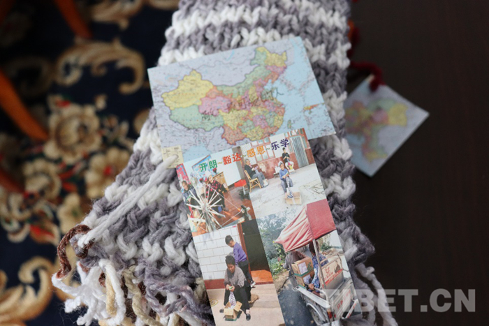 圖為暖心圍巾上的吊牌寫著“敬最可愛的人”