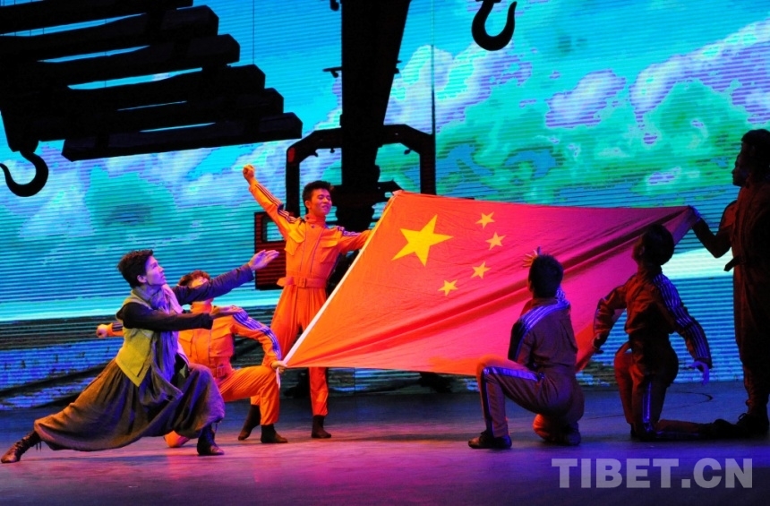 圖為《圓夢(mèng)》歌舞劇在國(guó)家大劇院的演出劇照——青藏鐵路成功鋪軌(唐召明2015年10月13日攝)