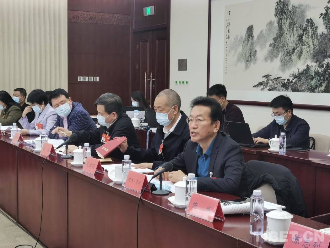 圖為全國(guó)政協(xié)常委阿沛?晉源在兩會(huì)小組討論上發(fā)言