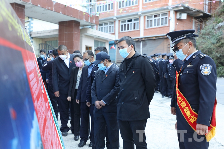 3月28日,檢查站組織全體民警和部分口岸務工人員代表舉行升國旗、奏國歌儀式,隨后各黨支部召開主題黨日活動,會后,民警們拿起筆在橫幅上簽下了自己的名字。