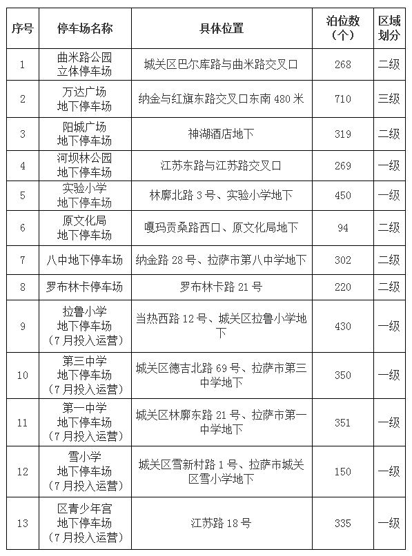 這13個(gè)指定停車(chē)場(chǎng)為: