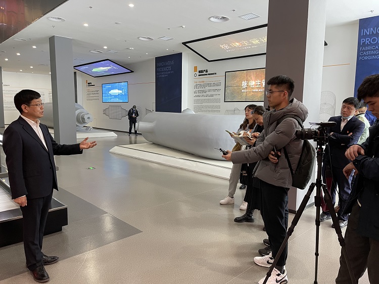 圖為中國(guó)一重有限公司董事長(zhǎng)劉明忠介紹情況