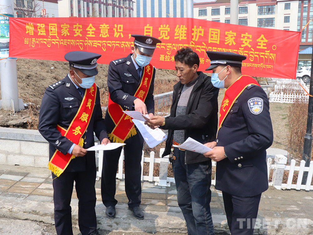 “12339,是國家安全機(jī)關(guān)受理公民和組織舉報電話。這條熱線是由國家安全部設(shè)立的,為了方便公民組織向國家安全機(jī)關(guān)舉報行為或線索?!痹谖鞑厝湛t市的街頭,日喀則邊境管理支隊民警達(dá)娃卓嘎為過往群眾講解“全民國家安全日”的相關(guān)知識。