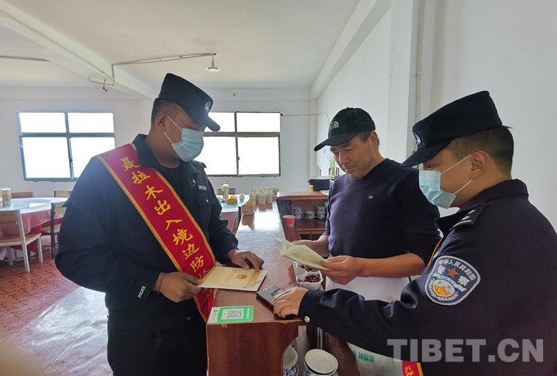 圖為西藏聶拉木出入境邊防檢查站民警為轄區(qū)餐館老板宣講法律知識