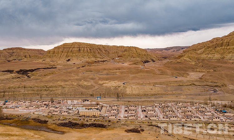 圖為札布讓村與遠(yuǎn)處的古格王朝遺址 攝影:趙耀