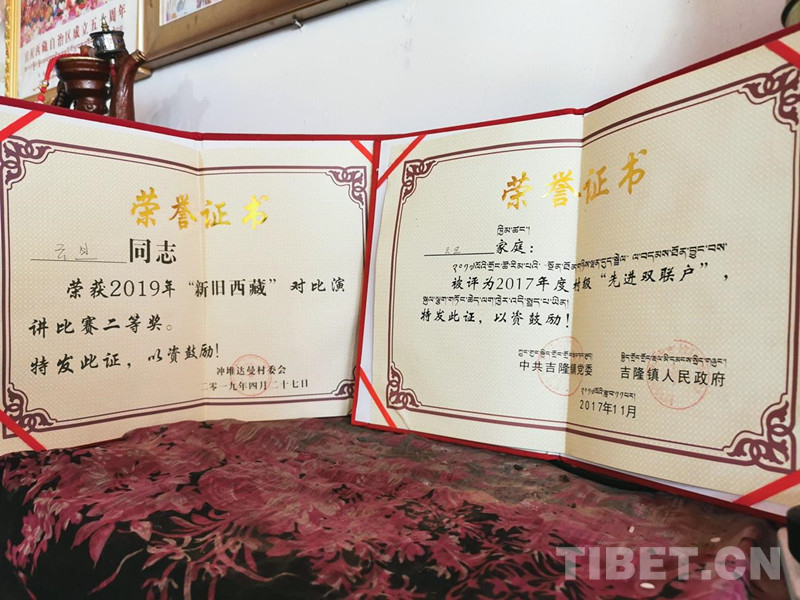 圖為云丹獲得的榮譽(yù)證書 攝影:德吉卓瑪