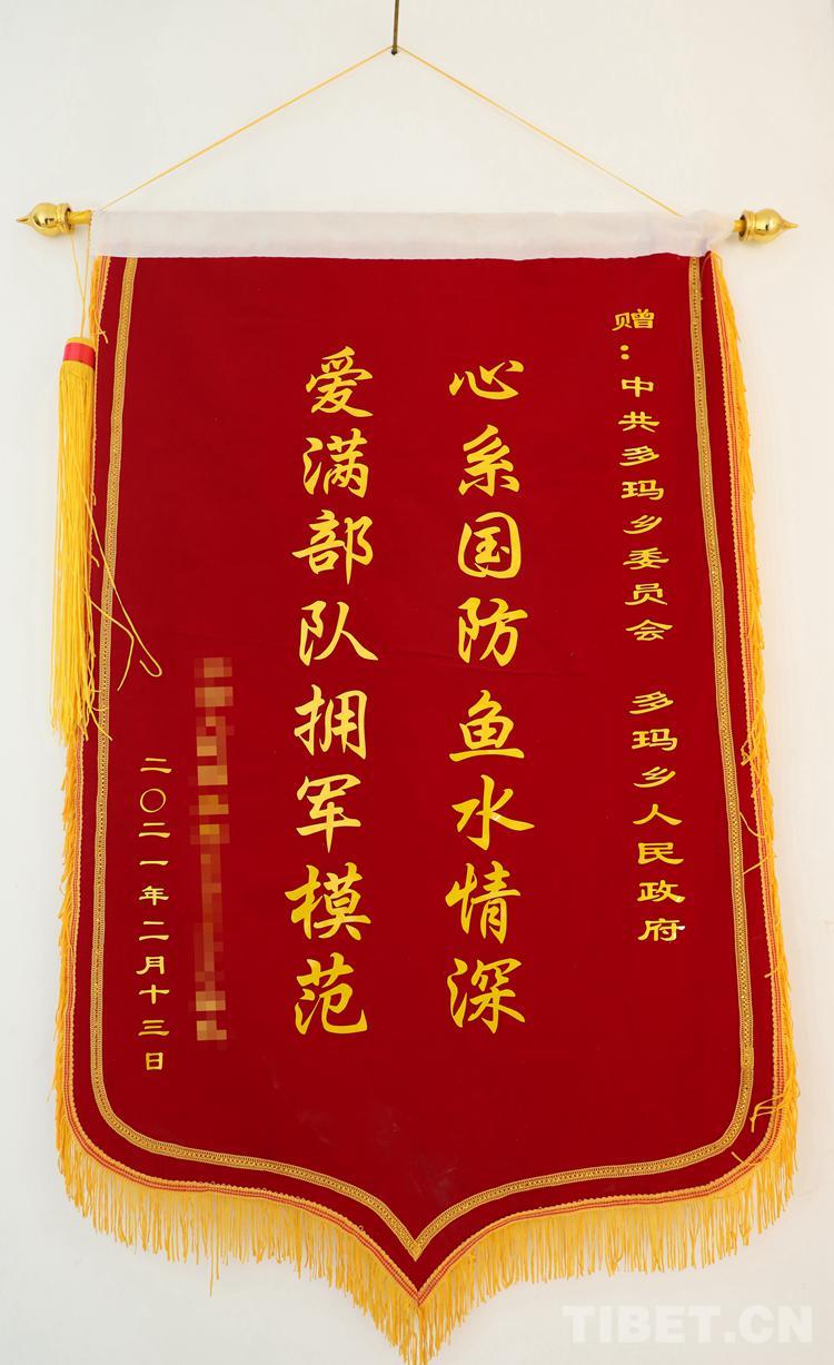 圖為駐地部隊(duì)贈(zèng)送的錦旗 攝影:賈華加