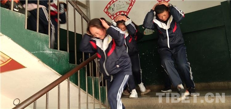 圖為左貢縣中學(xué)師生在演練中有序撤離