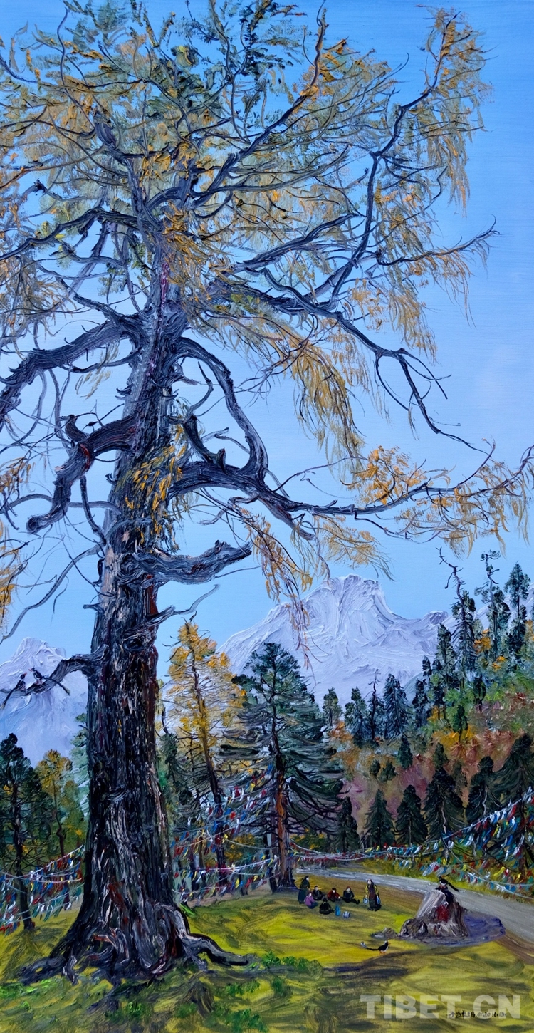 “展覽的油畫創(chuàng)作大多是在寫生現(xiàn)場完成的,她的藝術風格也清新生動。她以自己的寫生作品,令觀眾共享融入自然的至純大美,這是一種平易近人的審美方式?!眹乙患壝佬g師余有心評價說,子白特別善于畫樹,她的一幅幅佳作就是這些千年古樹的肖像,借審美而參悟自然生態(tài)的奧妙,帶觀眾領會高原生態(tài)文明之真諦。