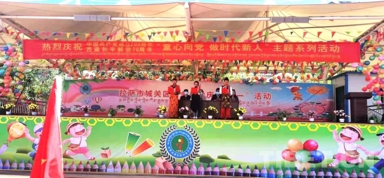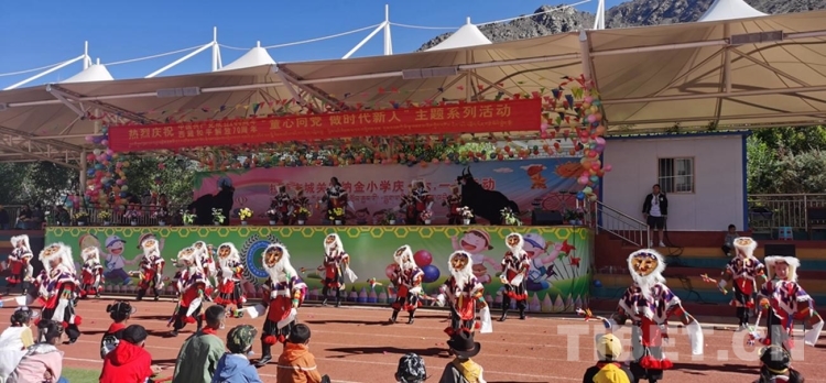 圖為西藏自治區(qū)拉薩市城關(guān)區(qū)納金小學(xué)“童心向黨、做時代新人”六一兒童節(jié)活動現(xiàn)場