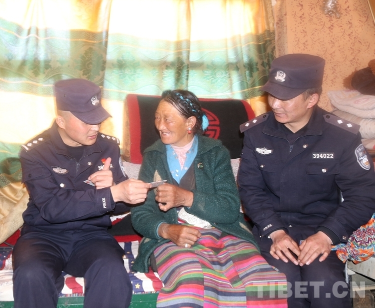 圖為民警為益西卓嘎送去身份證