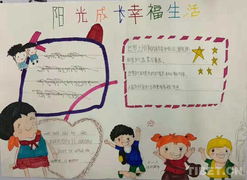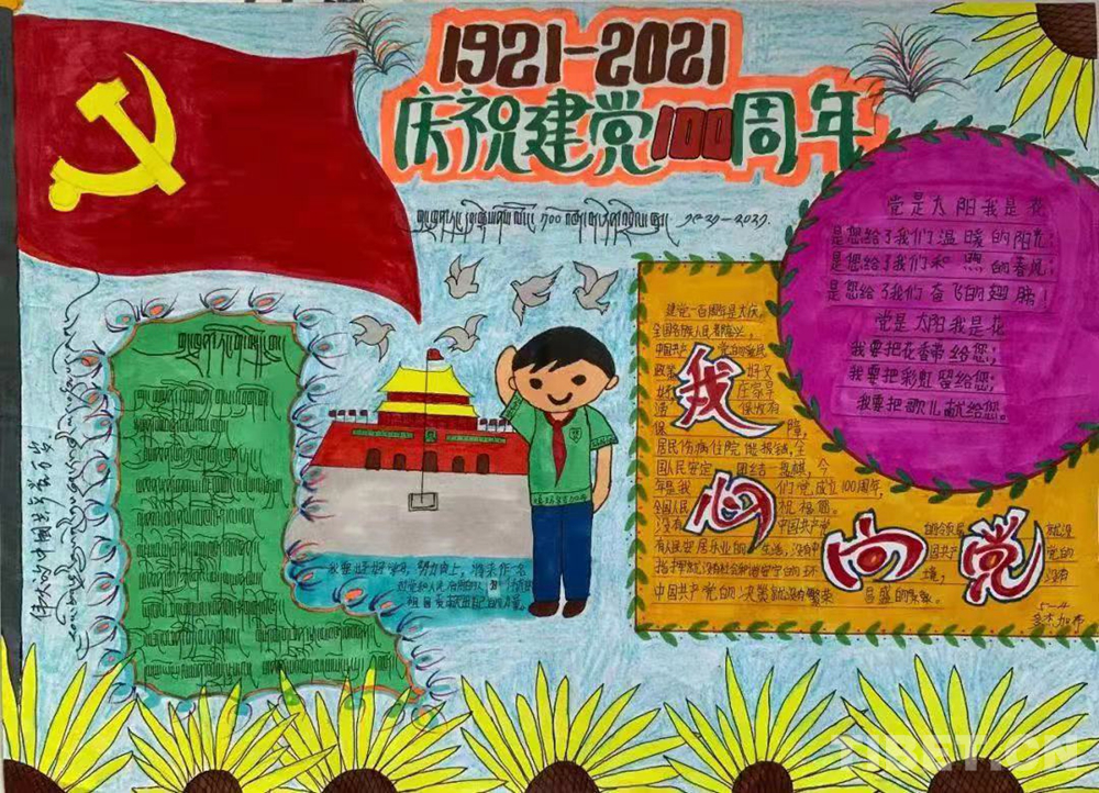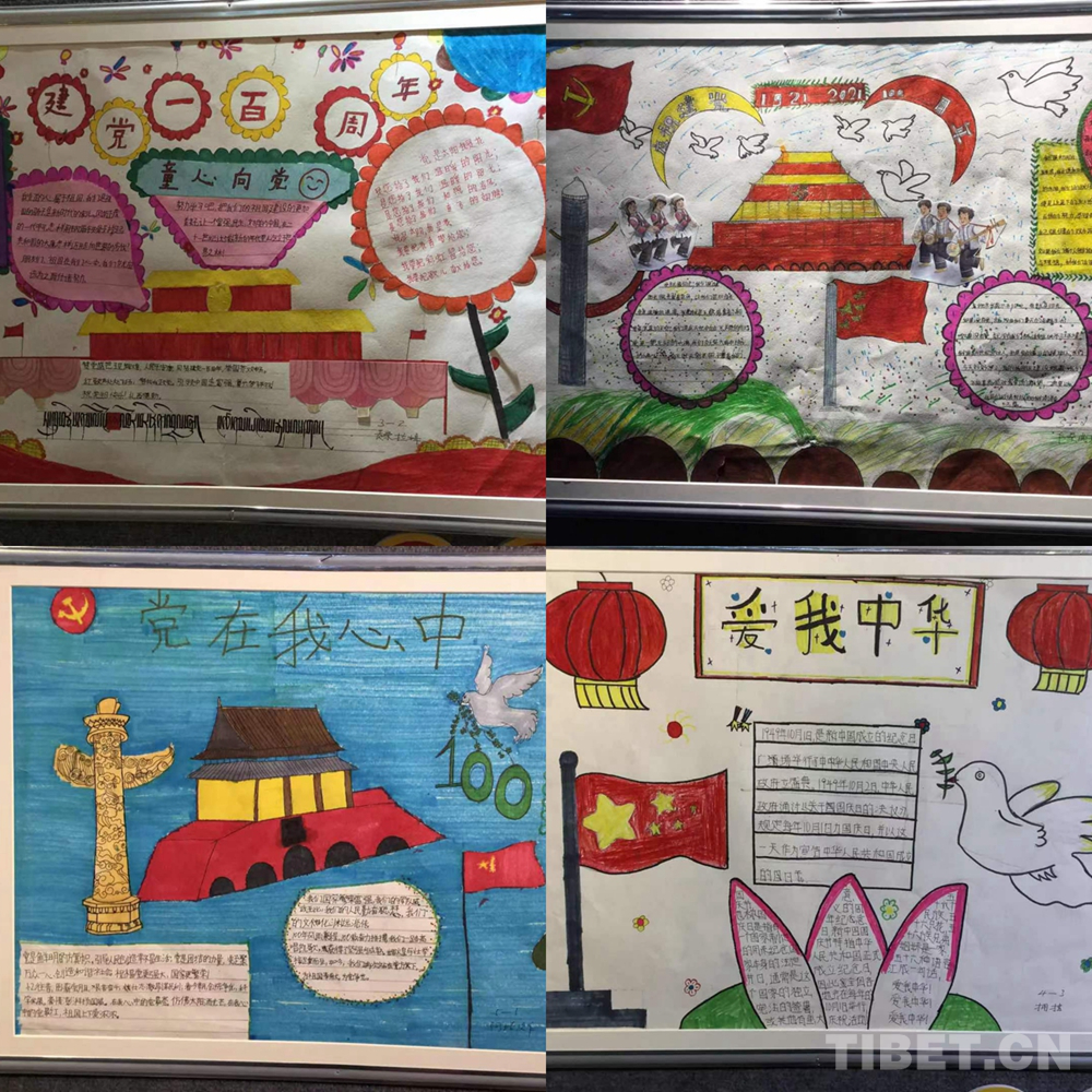 此次展覽是在慶祝中國(guó)共產(chǎn)黨成立100周年、西藏和平解放70周年之際,舉辦的一次展示西藏少年精神面貌的少兒手抄報(bào)專題展。展覽從今年三月份開始策劃,共展出240幅堆龍德慶區(qū)小學(xué)生手抄報(bào)。