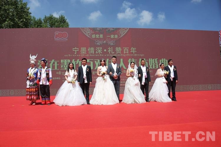 中國(guó)西藏網(wǎng)訊 藍(lán)天為媒、碧水為證,與黨同慶、永結(jié)同心。在中國(guó)共產(chǎn)黨成立100周年來(lái)臨之際,6月28日,“寧墨情深·禮贊百年”——愛(ài)在墨竹百對(duì)佳人集體婚典在西藏自治區(qū)拉薩市墨竹工卡縣甲瑪鄉(xiāng)松贊干布紀(jì)念館盛大舉行,百對(duì)佳人隆重集會(huì),迎建黨百年、結(jié)百年姻緣。